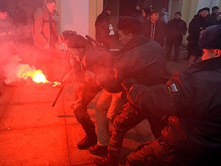Ранее на Пушкинской площади разогнан митинг генералов в отставке, организованный "Союзом советских офицеров". Акция проходила на Пушкинской площади. Как сообщает сайт "Каспаров.Ru", омоновцы задерживали военных, собравшихся на акцию, крайне жестко. Участников митинга тащили в автозаки за руки и за ноги, волокли по земле. Задержаны около пятидесяти человек, в том числе председатель Союза советских офицеров генерал Алексей Фомин, а также адмирал Владимир Березин.