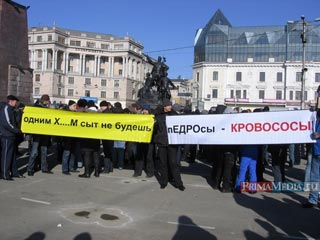 На плакатах были не только экономические, но и политические призывы: "Правительство - в отставку", "Путин, борись с олигархами, а не простыми людьми".