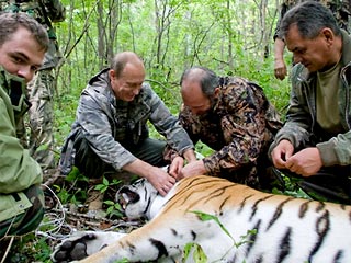 После этого премьер с сопровождающими отправился в тайгу - к месту, где находилась попавшая в петлю для отлова животных 5-летняя тигрица. Уверенным выстрелом из устройства для дистанционного обездвиживания животных Путин попал тигрице в лопатку и тем самым, возможно, спас от увечий и травм журналистов съемочной группы программы "Вести". Дело в том, что корреспонденты, ожидавшие прибытия премьера и находившиеся недалеко от тигрицы, стали свидетелями того, как хищница освободилась из петли.