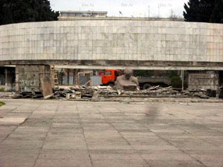 Как передает "Эхо Москвы", в некоторых азербайджанских СМИ появились фотографии, на которых рабочие разбирают гранитные плиты, которыми облицован монумент Бакинским комиссарам, а также обнесенный строительным забором парк "Сахил", где стоит памятник.