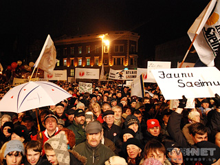 Все начиналось вполне мирно: непрерывным потоком люди стекались на главную площадь Риги - Домскую. Всего организаторы обещали участие около 20 тыс человек, крупнейшую демонстрацию со времен восстановления республикой независимости в 1991 году. Принять участие в манифестации пришли не только жители столицы, но и других латвийских городов. В руках они держали многочисленные плакаты и растяжки, на которых критикуют деятельность властей, призывают к роспуску парламента и отставке правительства.