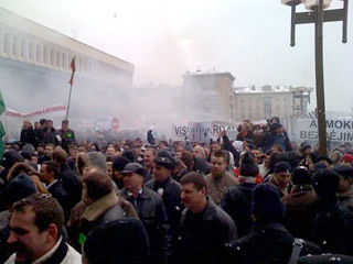 Напомним, накануне в столице соседней Латвии прошла массовая акция протеста против антикризисных мер правительства. Митинг, в котором приняли участие более 20 тыс. человек, организовало оппозиционное общество "За другую политику". Затем примерно 1000 демонстрантов, в основном молодежь, направились к зданию латвийского парламента. Они пытались проникнуть в здание Сейма и забрасывали полицейских сначала снежками, а затем стеклянными бутылками, петардами, сырыми яйцами и камнями.