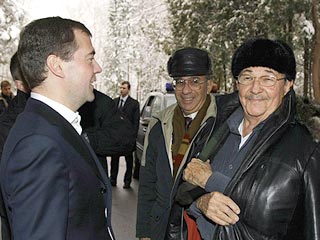 Медведев также пообещал кубинскому лидеру продемонстрировать фильм, снятый в ходе одного из предыдущих визитов Фиделя Кастро в Россию. "У меня даже есть фильм, который был когда-то снят о пребывании здесь команданте Фиделя Кастро, есть и интересные фотографии", - сказал он.