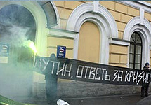 В четверг около 11.00 трое нацболов ворвались в приемную Путина. Двое из них приковали себя наручниками к батарее, третий - Сергей Гребнев - вывесил в окне флаг с серпом и молотом в белом круге на красном фоне. Еще двое нацболов стояли возле здания с антиправительственными лозунгами. Участники акции требовали встречи с Владимиром Путиным.
