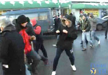 На Полянке на участников шествия набросились несколько десятков провокаторов в марлевых повязках на лицах. Они стали избивать активистов, однако их удалось оттеснить. Сильно избит один из участников шествия, активист "Обороны" Алексей Казаков, у него сломан нос. Пострадал также корреспондент Граней-ТВ Дмитрий Зыков. По словам корреспондента "Граней", по окончании акции задержаны 11 человек. Одному из задержанных сотрудники милиции сломали руку. Все задержанные доставлены в ОВД "Якиманка". Алексею Казакову в отделении милиции отказывали в медицинской помощи. Затем он был госпитализирован.