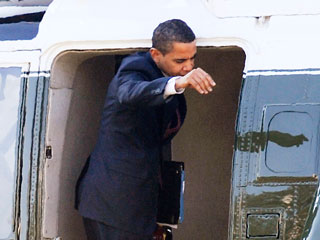 Обама не вписался в дверь вертолета, покидая Белый дом