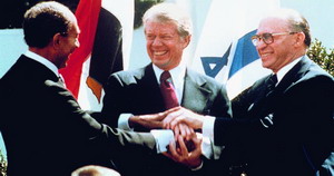 Трудно было себе представить двух более разных людей, чем Бегин и Садат. Садат был мистиком. Бегин — талмудистом. Картер должен был погрузиться в историю и доказать обоим, что понимает их претензии. Два дня Картер сам занимался переговорами, вместе с экспертами работал над картами и документами. Он своей рукой набросал окончательный документ. В воскресенье 18 сентября 1978 года измученный Картер закончил работу. Втроем они на вертолетах вернулись в Белый дом. Это был триумф Картера.