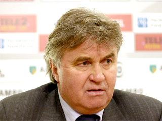 В "Лужниках" в преддверии матчей отборочного турнира чемпионата мира по футболу 2010 года с Азербайджаном (28 марта, Москва) и Лихтенштейном (1 апреля, Вадуц) прошла пресс-конференция главного тренера сборной России Гуса Хиддинка.