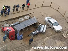 Как сообщил Интерфаксу источник в правоохранительных органах столицы, инцидент произошел около 9:30 в районе дома 26 на Изюмской улице в Южном Бутове. Под "КамАЗом" , груженным землей, проломился асфальт, и автомобиль рухнул в яму. Провал стал расширяться и поглотил припаркованные у обочины три легковых автомобиля. В итоге, образовалась яма диаметром около 20 метров.