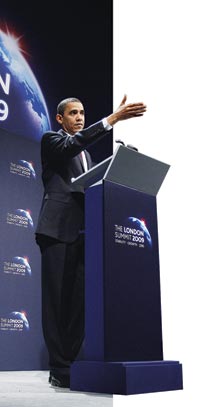 Больше всего президенту понравился вопрос китайского корреспондента, который не без сарказма отметил привязанность Обамы к собственным журналистам и спросил, понимает ли человек, стоящий на подиуме, что мир более не исчерпывается Америкой и что появились иные лидеры, кроме США. Зал замер. Обама даже не напрягся. Напротив, совершенно спокойно признал, что США больше не являются той великой державой, которая диктовала условия — как минимум экономической игры — остальному миру. «Время, когда Черчилль и Рузвельт могли решать вопросы, куря сигары и попивая бренди, давно прошло», — сказал он. И добавил, что Америка понимает свою вину за то, что «некоторые американские компании брали на себя неоправданные риски», что привело мир к нынешнему кризису. Зал одобрительно загудел: такое «падение на колени» Америки журналистам явно пришлось по душе.