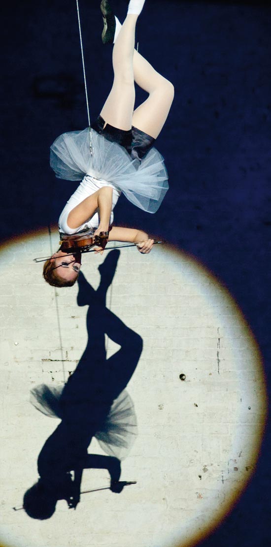 Музыканты и «циркачи» — молодые актеры Театра на Таганке — в полете и музыке ждут начала репетиции. Она задерживается на час — что-то не ладится у техников, но вот наконец случилось: в зал входит Юрий Петрович Любимов. «Господа, будьте добры, прекратите прыжки! Начинаем!» — негромко, но веско произносит он, садясь за свой столик. Включает лампу, берет легендарный фонарь, который вот уже 45 лет служит режиссеру указкой, «мини-софитом» и, главное, световым проводником его пожеланий и требований к актерам (если, например, Любимов быстро машет рукой в луче фонаря, артисты понимают, что они затянули мизансцену и надо прибавить темп).