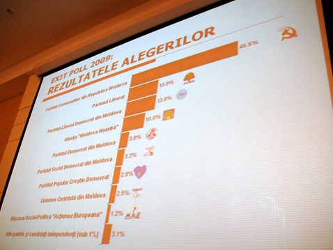 Борьбу за депутатские мандаты вели 12 партий и 5 независимых кандидатов. Результаты exit-poll подтверждали, что победа достанется Партии коммунистов. Вот что заявил лидер партии, действующий президент Владимир Воронин, когда узнал о результатах exit-poll: