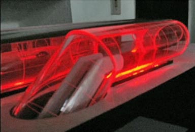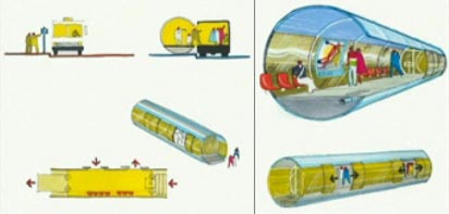 Система отличается важной вещью: остановочными пунктами в виде цилиндров, которые дают автобусу возможность работать так же, как метрополитены.