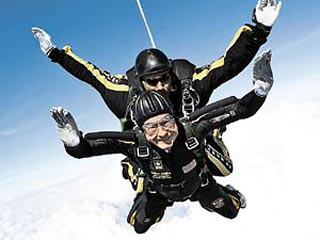 Под куполом парашюта экс-президент отметил также свои 75-летие и 80-летие. Причем, в 2004 году прыгнул даже дважды подряд, но, правда, уже не самостоятельно, как в предыдущих случаях, а в "тандеме" с Эллиоттом. Сержант помогал ему и при совершении прыжка в ноябре 2007 года - в честь открытия после реконструкции музея при мемориальной библиотеке, которая носит имя Буша-старшего и находится на территории студенческого городка университета "Эй энд Эм" в Колледж-Стейшн (штат Техас).