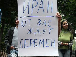 "Цель нашей акции - поддержать демократические силы Ирана, которые выступают сейчас против фальсификации выборов президента в этой стране", - сообщил "Интерфаксу" организатор акции, лидер движения "Мы" Роман Доброхотов.