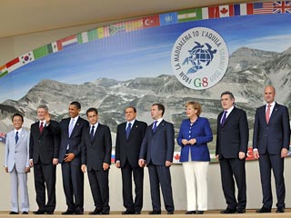 Встреча лидеров наиболее развитых в промышленном отношении стран, в число которых входят Великобритания, США, Германия, Франция, Италия, Япония, Канада и Россия, проходит в пострадавшем недавно от разрушительного землетрясения итальянском городе Аквила с 8 по 10 июля. Накануне саммита обострился вопрос правомерности участия в нем хозяйки форума - Италии. Страну честят за плохую подготовку и невыполнение обязательств по международной помощи, за что ее могут исключить из G8.