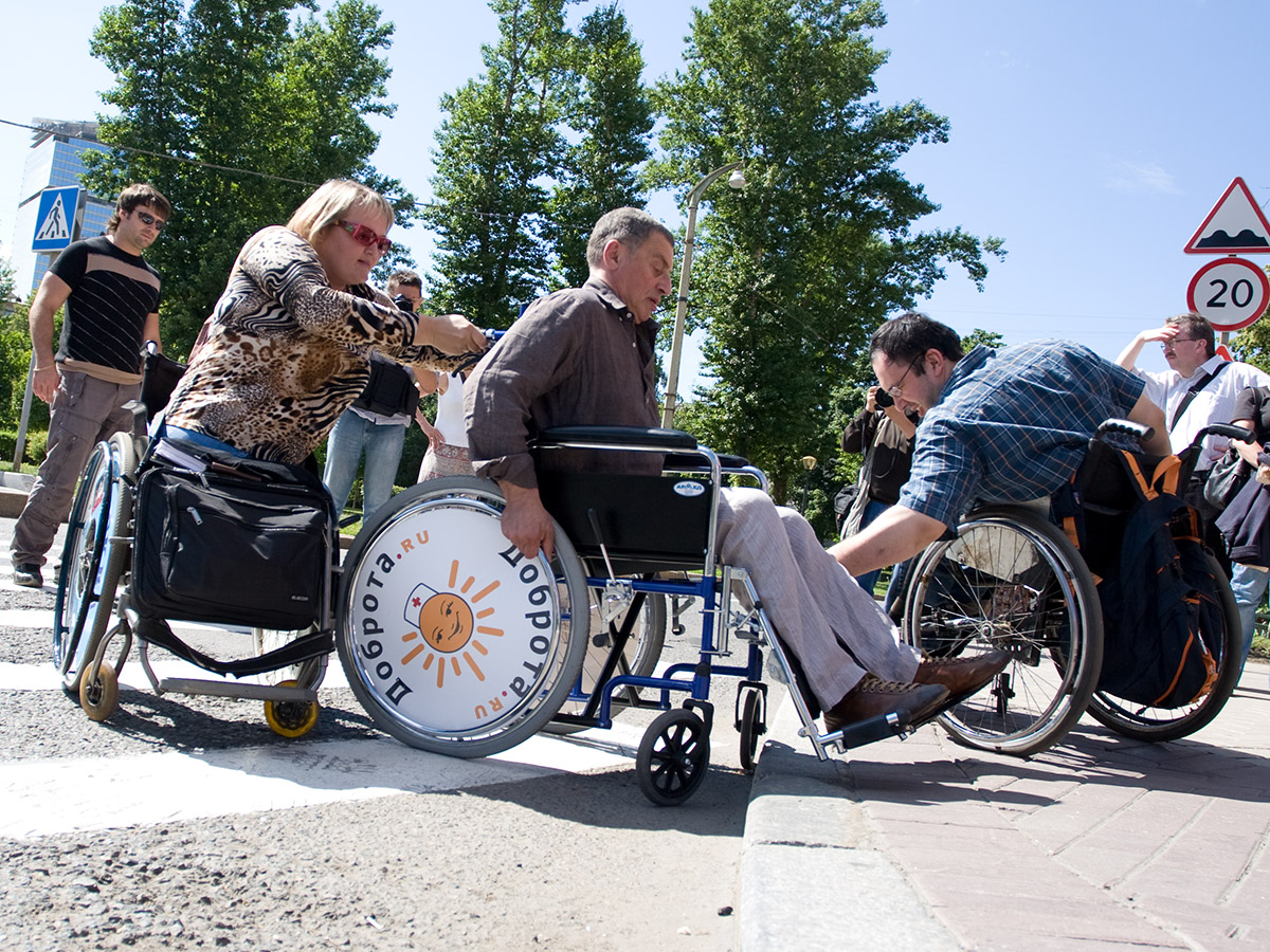 Алексей Морозов: В Москве ситуация ужасная. Как правило, вы не можете просто проехать на коляске вдоль одной улицы. Есть ситуации в городе, когда вы можете проехать только до ближайшего перекрестка и там упереться в совершенно неприспособленный пандус, например, или просто обнаружите его отсутствие. Или десять ситуаций, когда с одной стороны пешеходного перехода есть пандус, а с другой стороны его нет.