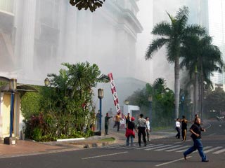 По данным очевидцев, первый громкий взрыв произошел в отеле Marriott. Примерно через пять минут бомба сработала и в Ritz Carlton.