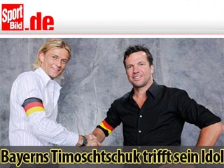 Полузащитник сборной Украины Анатолий Тимощук с юных лет мечтал быть похожим на звезду немецкого футбола 80-90-х Лоттара Маттеуса. И вот экс-капитан "Зенита", а ныне новичок мюнхенской "Баварии" познакомился со своим кумиром своего детства.
