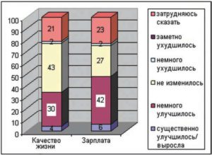 - Рис. 4. Изменение зарплаты и качества жизни молодых ученых РФ после введения системы стимулирующих надбавок по результатам научной деятельности (ПРНД) в РАН, 2008 г., %