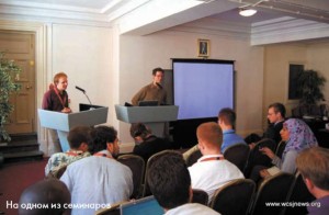 После семинара состоялось другое интересное мероприятие — презентации четырех городов, конкурировавших за право провести следующую Всемирную конференцию научных журналистов. Борьба шла между Каиром, Хельсинки, Найроби и Кампалой. Каждая команда делала небольшую презентацию и отвечала на вопросы из зала, например: «На сколько делегатов вы рассчитываете?», «Где вы собираетесь брать деньги?» и т.д. Финская команда раздала всем присутствовавшим симпатичные картонные козырьки с символикой «WCSJ-2011 Helsinki» и показала смешной видеоролик про прелести финской столицы. Египетская заявка была сильна очарованием Нади Эль-Авади, бывшего президента Арабской ассоциации научных журналистов, и тем, что это была совместная заявка арабской и американской ассоциаций научных журналистов.