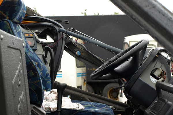 Колеса, сиденья, двери справа сохранили следы дерна и травы. Становится понятно, что автобус, перевернувшись, скользил какое-то время по земле. В выломанных грузовых отсеках еще находятся сумки с вещами, булка хлеба, йогурт, расчески... В кабине водителя найти семечки, за которыми, по одной из версий, он наклонился и не справился с управлением, корреспонденту ТАЙГИ.info не удалось. А может быть, их уже там и нет. В кабине сохранилось несколько бутылок минеральной воды и пачки сигарет. То, что водители практически не пострадали, вполне объяснимо: над их креслами не было крыши, и руль у немецкого автобуса левый, а автобус падал на правый бок.