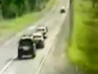 Запись велась с камеры видеонаблюдения на посту ГИБДД на границе с Северной Осетией - так называемый пост в "Центре-камаз", сообщает сайт.