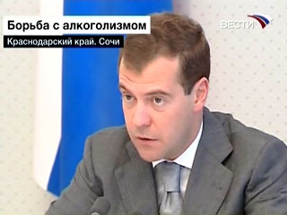 Президент РФ Дмитрий Медведев в Сочи в среду открыл совещание "О мерах по снижению потребления алкоголя в России". Как заявил глава государства, несмотря на ранее принятые меры по снижению потребления алкоголя в стране, алкоголизм в России превратился в национальное бедствие, сообщает "Интерфакс".