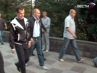 Премьер Владимир Путин, который в среду находился с визитом в Абхазии, по его окончании прилетел в Сочи. Там он встретился с президентом Дмитрием Медведевым, и российские лидеры вдвоем отправились гулять по набережной.