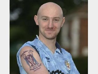 Ярый поклонник английского клуба "Манчестер Сити" на правом плече сделал татуировку - "Победитель Лиги чемпионов 2011".