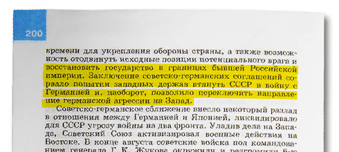 Манифестом школьно-исторической контрреволюции стала в 2007 году книга для учителя под редакцией Александра Филиппова по новейшей истории СССР и России (1946–2006), составленная группой уполномоченных Кремлем «историографов». В результате чтения именно этого опуса в голове одной школьницы родилась формула о Сталине как «эффективном менеджере». Через год в несколько обновленном составе этот же авторский коллектив написал и учебник отечественной истории 1900–1945 годов. Он пока не вышел в свет, но на сайте издательства «Просвещение» можно ознакомиться с его развернутой концепцией (приведшей в ужас историков, не совсем утративших представление об элементарной порядочности). Тезис критиков пакта, осуждающих его безнравственность, по мнению авторов, «весьма легко опровергается примерами такого же манипулирования судьбами малых стран и народов «демократическими» Англией и Францией» (имеется в виду Мюнхенский сговор). Положительное же значение пакта заключается прежде всего в том, что поход Красной армии в сентябре 1939 года был «реальным освобождением тех территорий, которые отошли к Польше по Рижскому мирному договору 1920 г., т.е. ...не чем иным, как освобождением части Отечества».