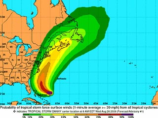 Тропический шторм "Дэнни" сформировался в Атлантическом океане у побережья Багамских островов, сообщило в среду агентство AP. Согласно его данным, скорость ветра, сопровождающего шторм, составляет сейчас 72 километра в час.