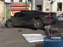 Машина выскочила на тротуар, где сбила дорожный указатель, повредила рекламный щит и врезалась в стену дома номер 2 на 1-й Тверской-Ямской улице. Спорткар при этом повис на бетонном основании им же сбитого знака.