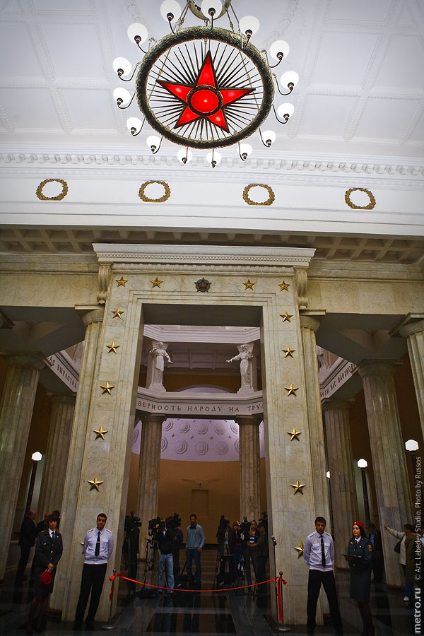 Впрочем, главное даже не в этом: изначально станцию украшала еще и статуя товарища Сталина. Если уж взялись все восстанавливать, то надо было вернуть и ее. «Мы прорабатывали вопрос установки другого памятника, но решили на том месте, где стоял Сталин, оставить световую нишу», – сказал начальник Московского метрополитена Дмитрий Гаев. Дело, мол, в том, что оригинал статуи пропал из запасников метро. Ну уж это совсем смехотворное объяснение – могли бы изготовить точную копию, ведь и мраморная плита в вестибюле не изначальная. Да вот и надписи «Сталинград» вместо «Волгоград» в убранстве самой станции тоже сделаны заново, хотя и крайне неряшливо, а тут вдруг… световая ниша.