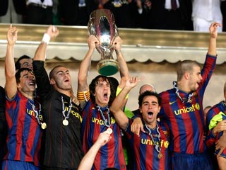 Испанская "Барселона" победила донецкий "Шахтер" в матче за Суперкубок УЕФА. Матч в Монако завершился со счетом 1:0 в пользу команды Хосепа Гвардьолы, которая склонила чашу весов в свою пользу лишь в дополнительное время.