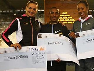 Российская прыгунья с шестом Елена Исинбаева, американская бегунья Саня Ричардс и эфиопский стайер Кенениса Бекеле разделили на троих миллионный Джек-пот "Золотой лиги".