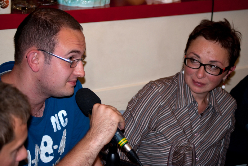 За нашим столом – владелец компьютерной фирмы Николай Бровкин, совладелец строительной компании Дмитрий Кондратов, студент факультета политологии Карлова университета Владимир Знаменский, актеры Штепан Цоуфал и Филипп Тройовский, слависты Радка Бзонкова, член общественной организации "Человек в беде", и Линда Вольфова.