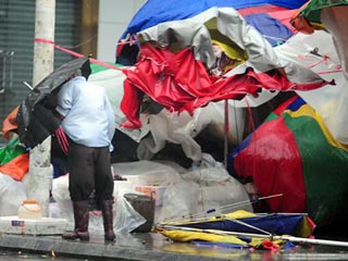 Первый удар стихии принял на себя город Ваньнин, хотя в первые минуты осадки были небольшими и скорость ветра не разрушительная - 15 метров в секунду. Порывами сносило легкие постройки и тенты, пострадавших нет.