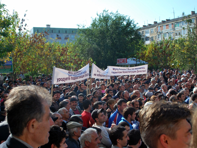 Сегодня в 15 часов в Дербенте начался митинг протеста и продолжался около двух часов. По разным оценкам, в нем приняли участие от пятисот до пяти тысяч человек.