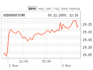Средневзвешенный курс доллара США к российскому рублю со сроком расчетов "завтра" на торгах единой торговой сессии ММВБ по состоянию на 11:30 по московскому времени, на основе которого происходит процесс курсообразования доллара на следующий день, повысился на 3,93 копейки и составил 29,2337 рубля, передает "Финмаркет".