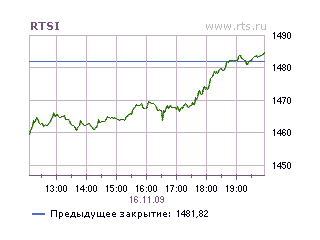 По итогам торгов в понедельник индекс РТС обновил годовой максимум и взлетел до 1481,82 пункта (+4,39%), предыдущий максимум на закрытие торгов был зафиксирован 26 октября (1476,06 пункта).