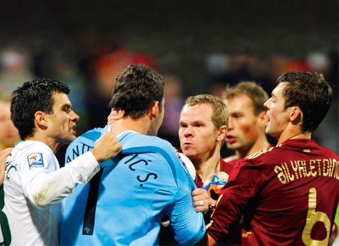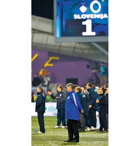 AP PHOTO Бойся равнодушных Да и проиграли-то, несмотря на два удаления в гостевой игре, как-то беззлобно. В самый нужный момент команда Хиддинка вдруг выдала худшую игру. Еще недавно против куда более сильных немцев мы явно не заслуживали поражения, а тут спасовали перед соперником, который вроде сам должен был нас бояться. Но словенцы даже первый матч в Лужниках начали так нагло, словно они были на стадионе хозяевами. А проигрывая в два мяча, смогли переломить игру и едва не сравняли счет. Тогда многие почему-то решили, что нам не повезло в концовке, но что же мы увидели в Мариборе за целых полтора часа? Если команда приехала оберегать добытое преимущество, то почему матч начался с выхода словенского форварда один на один с Акинфеевым и продолжился ударом по своим воротам Игнашевича, попавшего, к счастью, в штангу. Если же эта команда намеревалась забивать, то Кержакову надо было мяч пинать, а не лежащего вратаря — датский арбитр в Москве Аршавина за удар рукой пожалел, а норвежский в Мариборе за движение ногой наказал Кержакова по полной. Но когда команда играет в некий свой футбол, удаление иной раз только добавляет ей сплоченности и злости, а наша оказалась неспособной даже огрызнуться. Где сборная успела так устать за три дня между двумя этими матчами? Если не получается созидательная игра, люди хотя бы на разрушении пытаются сконцентрироваться, а тут — полная разбалансировка. Ну и не может Акинфеев все и всегда тащить, особенно если в центре штрафной два защитника стерегут одного нападающего, но пробить ему почему-то дают совершенно без помех. Хиддинк перед стыковыми испытаниями говорил, что когда он принял сборную России, то первое, что ему бросилось в глаза, — это вялая реакция игроков на результат. Они не сильно радовались после побед и не больно-то огорчались поражениям. И голландец считал, что растревоженные эмоции русских футболистов — одно из главных его достижений на пути к успеху. А тут все словно бы вернулось на три года назад, в глазах была обреченность: пропустим — не отыграемся. Так, собственно, и случилось. И от осознания этого становится еще грустнее.