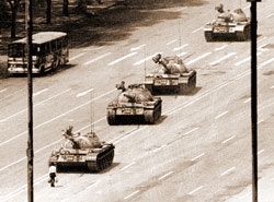 Символом событий на площади Тяньаньмэнь стала фотография, которую сделал 5 июня, на следующее утро после массовых казней, фотограф агентства Associated Press Jeff Widener. На снимке молодой человек стоит один перед колонной движущихся на него танков. Позже на WorldPressFoto этот снимок (названный «Одинокий бунтарь») был признан фотографией года.