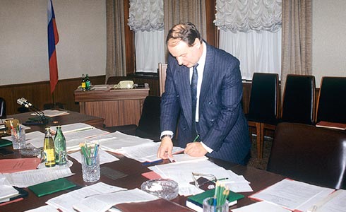 Лопухин: Июль 1992 года. Ельцин отправил меня в отставку, чтобы расчистить место для Черномырдина. Гайдар меня спросил: хочу ли я, чтобы он тоже подал в отставку? И это не было позой. Я ответил, что чем дольше он будет во главе правительства, тем лучше для дела. Когда мы начинали работать в правительстве, мы были молоды и совершали ошибки. Помню, в самом начале января 1992 года меня вызывает ныне покойный глава аппарата правительства Алексей Головков и говорит: мы приняли новые таможенные тарифы, подпишись, что ты ознакомлен, они вступают в силу через неделю. Я смотрю и не верю глазам: тарифы на экспорт нефти, газа, нефтепродуктов — выше мировой цены. Егору я сразу заявил: «Я не клоун, чтобы под этим подписываться». Он отвечает: «Ну что ты дергаешься? Давай людей вызовем — разберемся». Вызвали людей из Министерства внешних связей, выяснилось, что заниматься пошлинами на газ и нефть они поручили таможенникам. Те позвонили в Швейцарию в Таможенный союз и попросили консультации. В результате мало того что им дали старые цены, так они еще перепутали доллары со швейцарскими франками и не так их пересчитали! Вот и получились пошлины выше мировых — и этот документ уже подписан Ельциным. Когда разобрались, Егор вызвал Головкова и сказал: у тебя есть время до утра — все пересчитать и исправить. И вот всю ночь куча институтов и министерств этим занималась. С утра постановление за подписью Ельцина имело вполне адекватный вид.