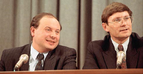 Март 1993 г. Глава Нижегородской области Борис Немцов и еще руководитель правительства Егор Гайдар: уже поругались и опять помирились