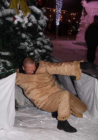 Только губернатор смог уговорить слезть Древарха Просветленного с главной ёлки Архангельска