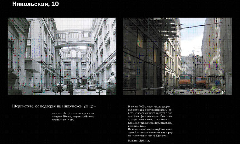 Объем утраченного за последние десятилетия историко-архитектурного наследия в Москве уже сейчас сопоставим с советским периодом. Все чаще проходят акции протеста против такого отношения властей к памятникам старины. Запускаются и различные просветительские проекты ― такие, как открывшаяся в Музее архитектуры выставка "Москва 1993- 2009: бремя перемен".