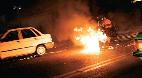 Жестокость, с которой полиция разогнала митингующих, оставив несколько десятков раненых и одного забитого палками до смерти, была подобна поджогу фитиля. Уже через несколько часов Тегеран вспыхнул заревом горящих мотоциклов, мусорных контейнеров, зданий. Полиции и армии оказалось недостаточно для 14-миллионного Тегерана, и в экстренном порядке на улицы вышли «Басиджи» — стражи революции, вооруженные деревянными дубинами и резиновыми плетьми. Вот уже неделю они с наступлением темноты ездят по городу группами по 10–20 мотоциклов. Всякий, кто попадается им на улице, — враг. В том, что в эти дни в Тегеране нужно уметь быстро бегать, автор убедилась на собственном опыте: остановившись поглазеть на пожар, попала под плеть вместе с оказавшейся рядом пожилой женщиной в хиджабе. Причем не так страшна была плеть, как безумные, ненавидящие глаза того, кто ею орудовал. Пришлось уносить ноги. Видела, как люди уносили окровавленную девушку с разбитой головой. Центральные улицы Тегерана, где обычно люди гуляют по вечерам, превратились в зону войны.