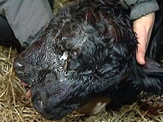 На ферме "Сооне" в Тартумаа родился теленок с двумя головами, передает местный портал ERR. У животного три глаза, два носа и два рта. Давать имя новорожденному не будут, так как вероятность, что он выживет, очень мала.