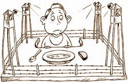 Это в компании младенца тоже, кстати, проблема. Что ест ребенок дома – я знаю. И знаю, что в еде он довольно консервативен. А идти учить шеф-повара готовить «суп по-маминому» - как-то не комильфо.